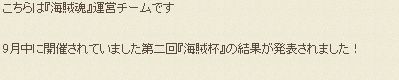 海賊杯の景品配布は23日ですが、結果発表はいつでしょうね。